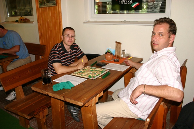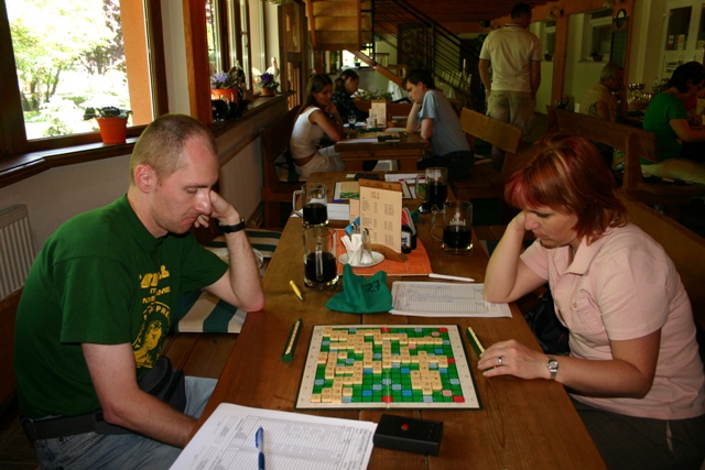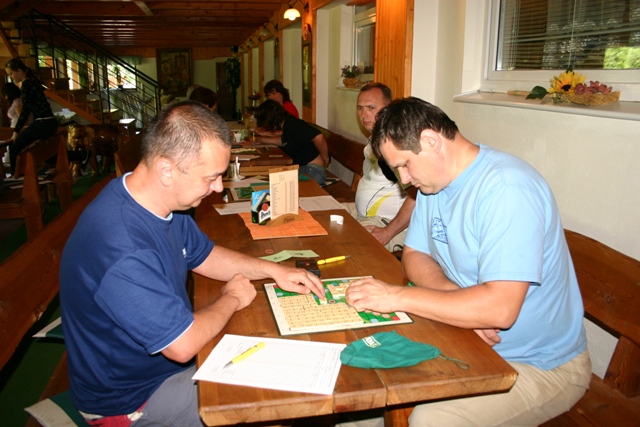 Za oknami letné slnko a vnútri príjemný chlad. Mohlo sa začať súťažiť. Slovom turnaja bolo CORGOŇ a odmenou dva tucty plechoviek s pivom tohto mena. Už v prvom kole Kaja Nemčoková nenechala nič na náhodu a keď nemala čo položiť, tak použila žolíka na vytvorenie tohto slova. Na prekvapenie, nikto z ostatných hráčov túto výzvu neprijal a slovo corgoň za hodnotnejší počet bodov už nepoložil. A tak Kaja brala výhru, ktorej sa tešil najmä Janko Vavák. Vysoké výhry a tesné prehry boli príznačné pre prvé kolo. To druhé sa pritrafilo spoluorganizátorovi Norovi Lančaričovi s Danielom Brezovanom. Daniel je síce tento rok vedený ako nováčik, ale nováčikovský stres má už dávno za sebou. Pripomínam, že na ňom stroskotal napríklad aj stále tróniaci majster.