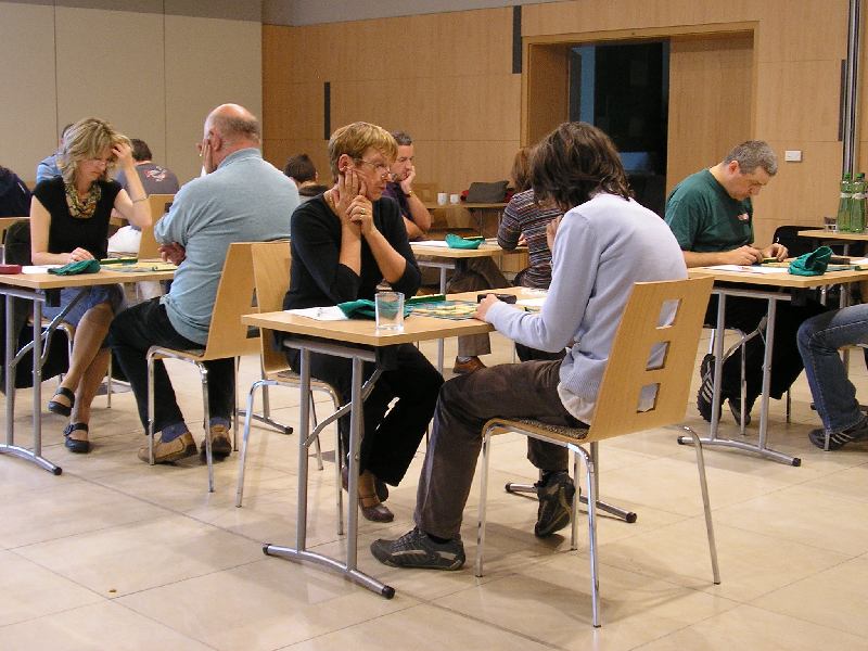 Ako som už onehdá avizoval, cieľom večernej prestávky mala byť aj príprava nasledujúcej sezóny 2010/11. Diskusia, prekladačky, kto áno, kto nie, kedy áno a kedy nie, kedy Vianoce (tie majú stály termín), kedy Veľká noc, kedy malá noc a kedy dlhé ráno. Záver: 10 kvalifikačných turnajov s majstrovstvami opäť v Strečne a aj vykladaný bude na spestrenie v apríli. Tí, ktorí sa tohto sympózia nezúčastnili, išli močiť nechty do bazéna alebo na prechádzku na tesne predtým uzavretý Strečniansky hrad. Večer sme sa zišli v altánku pri večeri a Miro Vaňo´s gitare. Harfa, harmonika neboli, husle bola. Známe skladby v iných aranžmánoch a aj zábava v rôznych aranžmánoch bola pri stoloch – ovocie v rôznych tvaroch, percentuálnom zastúpení a odrodách. Boli prístupné aj obilniny v tvare saké (u nás ešte stále neplatný výraz) a okopaniny v tvare zemiakov. Repák nikto nepriniesol. Počasie bolo, čarovná moja palička ešte z Lučatína čarovala a oheň v kozube praskal a dopĺňal atmosféru sobotňajšieho večera a skorého nedeľňajšieho rána. Kandidáti brali deky, po slovensky sa dekovali a išli rozjímať, tvoriť a pripravovať sa na nedeľu a zvyšných päť kôl.